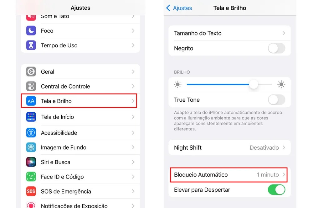- Entre em Ajustes > Tela e Brilho > Bloqueio Automático > Nunca